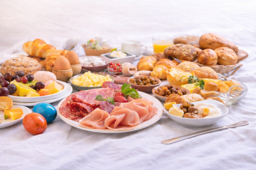 Am Buffet findest du eine große Auswahl an Wurst und Käse. Camembert, Brie, Schwarzwälder Schinken und Kochschinken. Geräucherter Lachs gehört ebenso dazu wie Marmeladen, Honig und Nutella. Joghurt, Müsli und Cornflakes stehen bereit. Frisches Obst und Obstsalat ergänzen das Angebot.