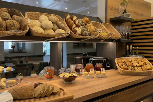 Am Buffet findest du eine große Auswahl an Wurst und Käse. Camembert, Brie, Schwarzwälder Schinken und Kochschinken. Geräucherter Lachs gehört ebenso dazu wie Marmeladen, Honig und Nutella. Joghurt, Müsli und Cornflakes stehen bereit. Frisches Obst und Obstsalat ergänzen das Angebot.